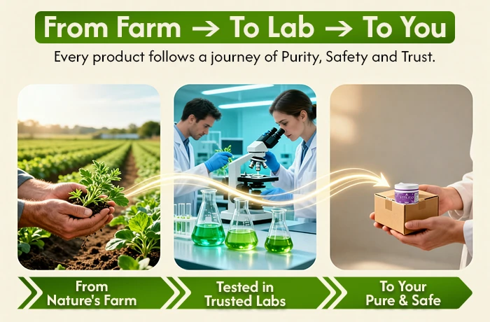 At Zolence International, every product begins with handpicked Ayurvedic herbs, grown in their natural environment. Our ingredients are then taken through state-of-the-art labs for testing, safety, and formulation. Finally, they are delivered to you in premium packaging, ensuring purity, potency, and trust at every step.